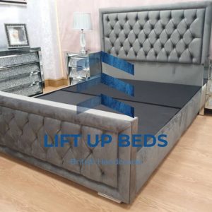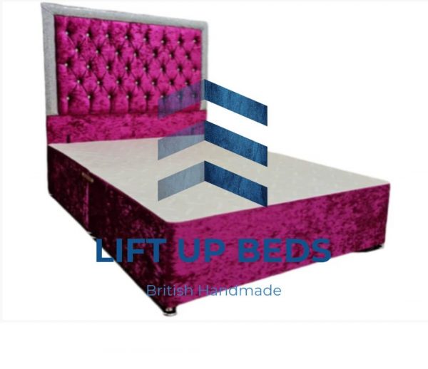 Add sparkle and glam to any bedroom with this modern glitter divan bed finished with a tall 54″ deep padded chesterfield design headboard.