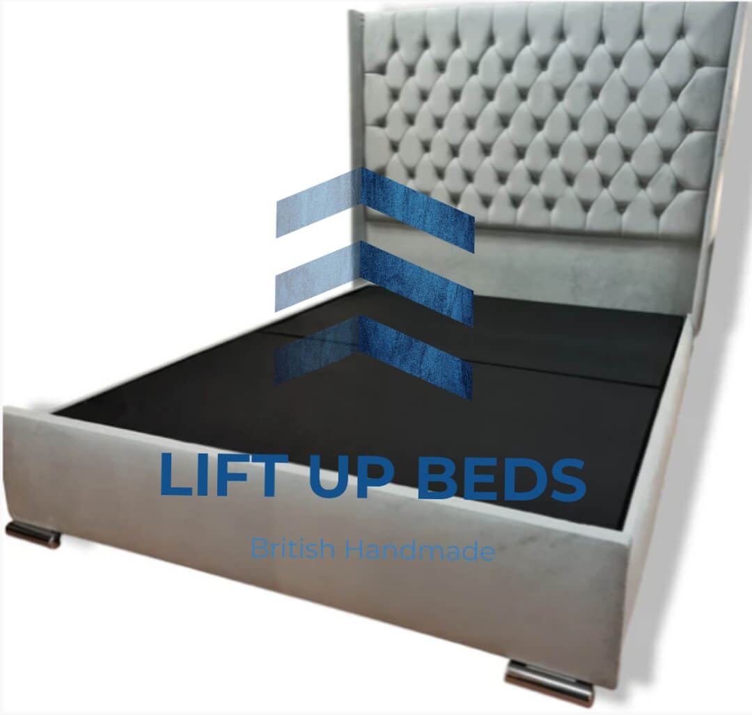 The Washington Wingback bed. High 54″ wingback headboard with Chesterfield Design gives this stylish bed a stunning contemporary and modern look.